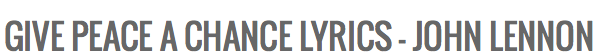 GIVE PEACE A CHANCE — Featured Song For 2014